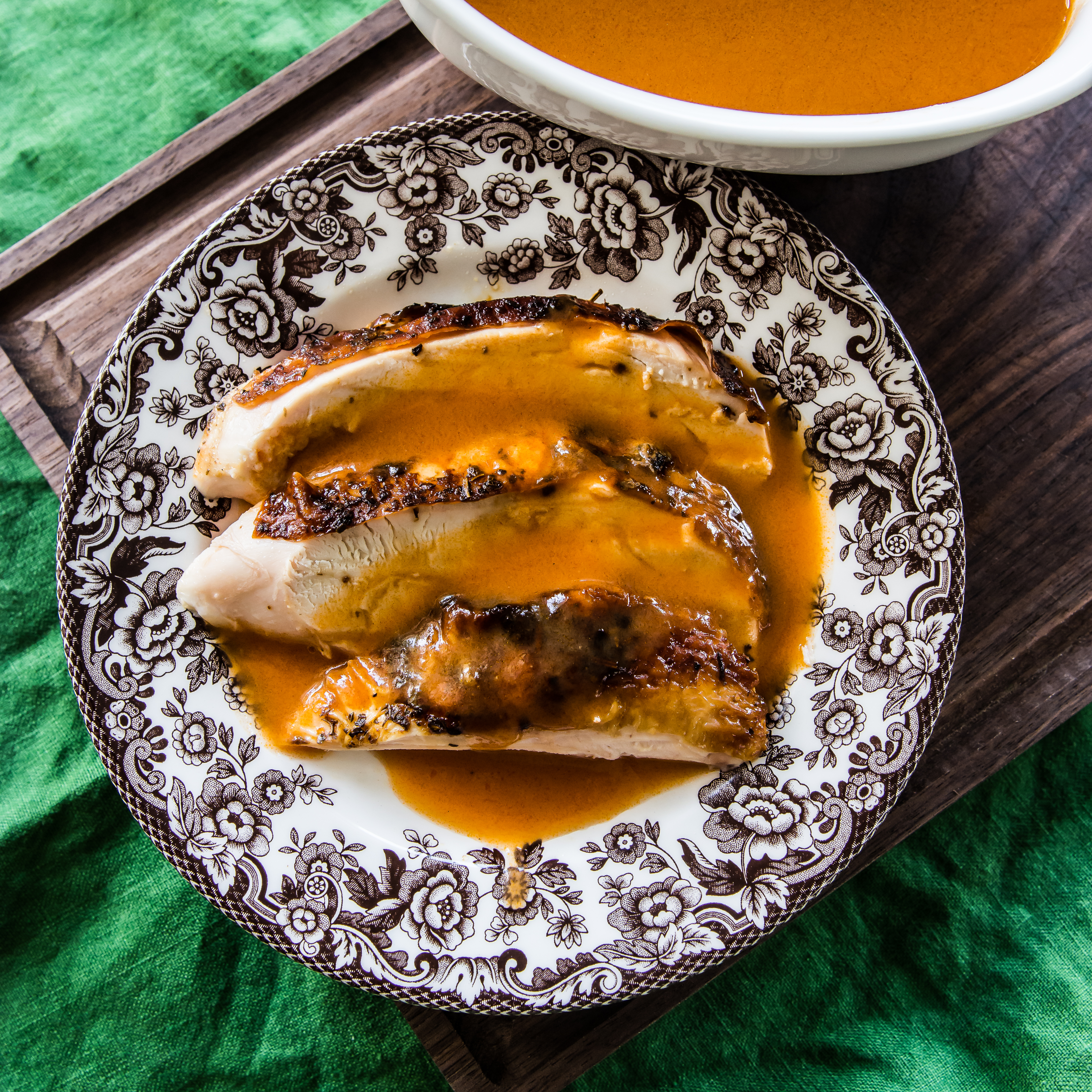 Author note: The chicken drumettes is to create “drippings” that would typically be collected at the end of the roasted turkey process. If you have drippings already available, skip the first step and omit the chicken and olive oil from your ingredient list. To save prep time, use pre-diced onions, carrots and celery. It is important to run the gravy through a fine sieve at the end. The final gravy texture is off putting if this step is skipped.